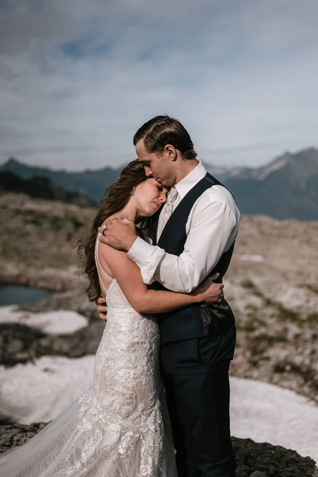 What a difference a day makes. We met back up at Artist point to resume our elopement session and thankfully the sun was shining and we were able to hit the trails and soak in the incredible views. This is where Artist Point really stands out from other elopement destinations. You just can’t beat these Glacier covered peaks the rise so abruptly into the sky. Snow melt creates pounds that are perfect for reflection shots and the bright green foliage contrasts perfectly with the grey rocks that make up the landscape. Olympic National Park has been my favorite elopement destination in Washington for the past few years but this one really gives it a run for the money.